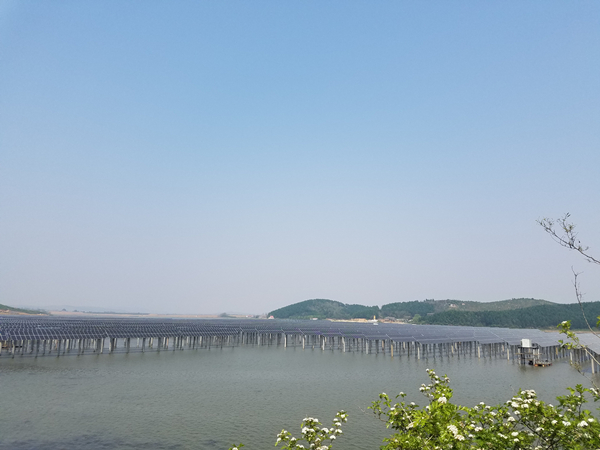 通威漁光一體(東港)漁業產業園一期20MWp項目位于遼寧省東港市小甸子鎮唐家隈子水庫。本項目總體規劃為利用水庫水面(含部分淺灘、荒地)2112.25畝,建設容量為60MW的現在漁業產業園。一期20MW項目,占地660畝,由66kV升壓站、66kV外部線線路和光伏場區三部分組成。項目于2017年2月24日開工建設,項目參建各方同心協力,眾志成城,克服了東北冬季極寒天氣、淤泥與淺水狀態下大型設備的運輸安裝等諸多困難,解決了外線工程跨河、跨國道、省道、縣道等、過民房、過山地、工期緊等難題,成為了2017年度遼寧地區66kV光伏電站首批并網的項目。