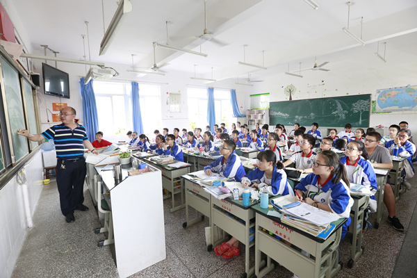 德陽市通威第六中學(xué)學(xué)生在寬敞明亮的教室里上課。