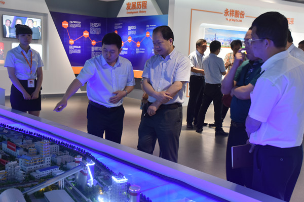 梁主任一行參觀了永祥體驗(yàn)中心,了解了永祥股份的發(fā)展歷程、文化理念,聽取了段董事長關(guān)于永祥股份堅(jiān)持創(chuàng)新變革、科技研發(fā)、安全環(huán)保、打造循環(huán)經(jīng)濟(jì)產(chǎn)業(yè)鏈建設(shè)等方面的介紹。梁主任對永祥將進(jìn)一步推進(jìn)“氣代煤”生產(chǎn)蒸汽、實(shí)施超凈排放的舉措表示贊賞,對永祥即將上馬的5萬噸高純多晶硅及配套新能源項(xiàng)目表示關(guān)切,并就國家清潔能源經(jīng)濟(jì)形勢、太陽能光伏發(fā)電相關(guān)政策等進(jìn)行了深入交流,希望公司再接再厲,進(jìn)一步做好節(jié)能降耗工作,提升核心競爭力,為地方經(jīng)濟(jì)發(fā)展做出更大的貢獻(xiàn)。
