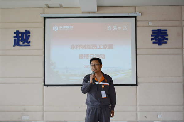 永祥樹脂總經理助理李業新對所有到來的員工家屬表示熱烈歡迎,聽取大家的發言后,感謝家屬們對永祥的高度認可。公司的發展與取得的成績離不開員工辛勤的付出,以及員工家屬的支持,員工是家庭的頂梁柱,更是公司的寶貴財富。在以后的工作中,上下同心,繼續發揚良好的工作作風,愉快工作、認真工作;希望員工扮演好自己的角色,承擔好家庭的責任。