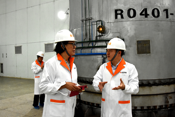 段雍董事長(zhǎng)陪同馮麗雯副主任參觀永祥多晶硅還原車間