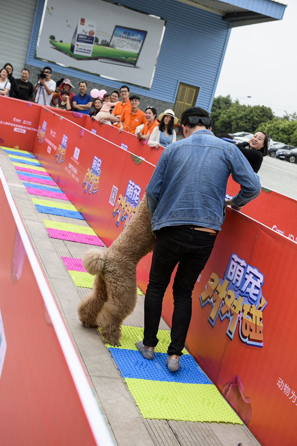 結(jié)束相親配飾秀環(huán)節(jié)后,緊接著便進(jìn)入到今天活動(dòng)的高潮部分————障礙跑道賽,障礙跑道賽不僅是針對(duì)犬只設(shè)有障礙,主人也面臨重重困難,需光腳踩指壓板,現(xiàn)場(chǎng)寵友在比賽后紛紛表示很后悔沒多穿幾雙襪子。即使前方障礙重重,萌主與萌犬仍舊齊心協(xié)力共同闖過重重難關(guān),順利通關(guān),完成比賽。主辦方分別為大型犬組和小型犬組的冠亞季軍進(jìn)行了頒獎(jiǎng)。