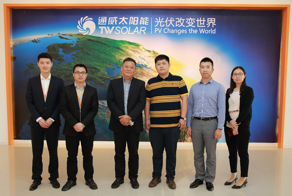 5月5日,晶澳太陽能采購總監(jiān)范靖一行蒞臨通威太陽能(合肥)有限公司參觀指導(dǎo),通威太陽能(合肥)有限公司高級副總裁陳家彬等熱情接待并座談。