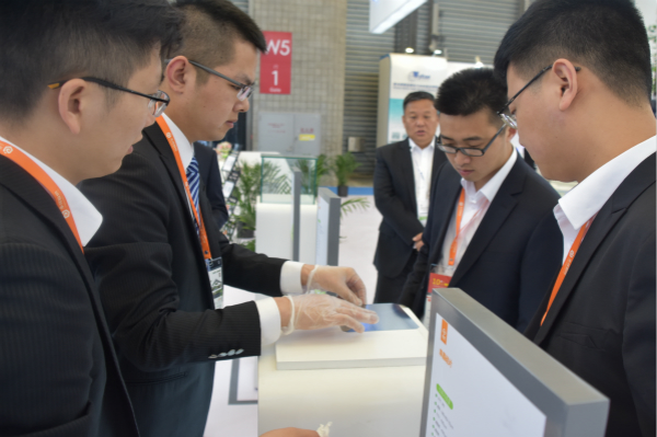 通威集團偌大的展廳流光溢彩,聲像和視覺畫面散發(fā)出強烈的吸引力,參觀來訪者絡繹不絕,永祥多晶硅及金剛線切割高效硅片樣品柜在臺前站立,迎接一雙又一雙認真注視的目光。4月19日上午9時,通威集團禚玉嬌總裁特意來到端莊簡潔的永祥展臺進行視察指導,向永祥員工表達了親切的問候,對永祥多晶硅產(chǎn)品、金剛線切割工藝高效硅片陳列展示情況表示關注,并與客戶朋友親切交流。期間,樂山市政府招商局相關領導來到通威展廳與禚總進行了會談。