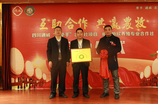 隨后的揭牌儀式上,四川通威市場部經(jīng)理王慶國解讀了《四川通威“手牽手”合作社項目書》,李文忠理事長與華西戰(zhàn)區(qū)合作社專員現(xiàn)場簽訂了合作協(xié)議,共同為峨邊恒欣養(yǎng)殖專業(yè)合作社揭牌,宣布峨邊恒欣養(yǎng)殖專業(yè)合作社正式啟動。據(jù)了解,為更好地發(fā)展合作社,合作社特聘請峨邊縣農(nóng)業(yè)局總畜牧師黃樹清為合作社顧問。