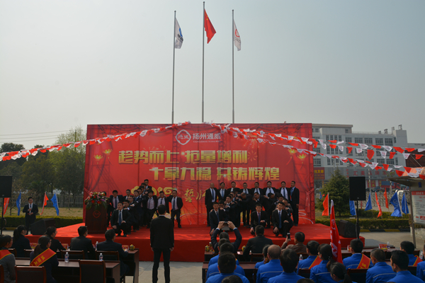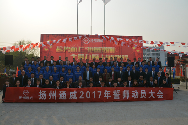3月10日,以“趁勢而上 搶量增利 十拿九穩 共鑄輝煌”為主題,揚州通威2017誓師動員大會隆重召開,通威股份副總裁兼華東戰區總裁王尚文出席,華東戰區水產技術總監蔣宗杰、揚州通威總經理楊建波及全體員工參會。