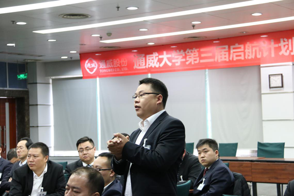 據了解,啟航計劃是通威大學為通威股份培養后備總經理的重要項目,從2015年啟動,每年一屆,參訓學員近百人。從2016年的第二期到2017年的第三期,郭總都高度重視,嚴格把關課件質量,親自為學員授課。學員們也紛紛表示,郭總案例式的教學方式接地氣、直擊痛點,有很強的指導意義,這正是實際工作中迫切需要的,在接下來的工作中,自己將認真消化吸收,學以致用,不辜負郭總的諄諄教誨。