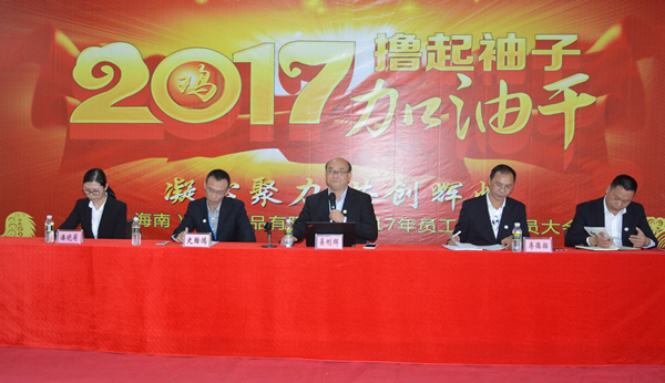 2月14日,海南水產食品有限公司“2017擼起袖子加油干————凝心聚力,共創輝煌” 2017年度誓師動員大會隆重舉行。海南水產食品有限公司總經理易剛輝及公司全體干部員工共700余人參加會議。