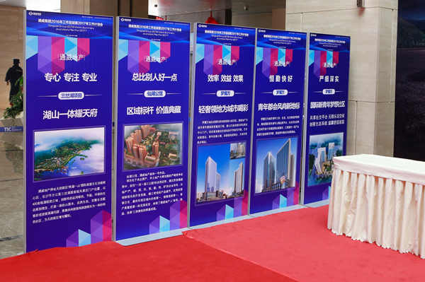 1月22日,通威國際中心大堂內(nèi)裝點(diǎn)一新,一幅幅催人奮進(jìn)的標(biāo)語格外引人注目,各板塊、各公司經(jīng)營成果展臺、展板整齊排列,現(xiàn)場工作人員熱情迎接勝利凱旋的通威英雄們。