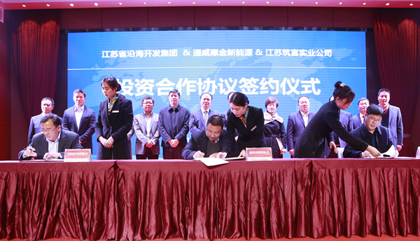 1月5日,江蘇省沿海開發集團有限公司總經理丁建奇,中共灌云縣委副書記、縣長朱興波,江蘇省筑富實業投資有限公司副總經理楊健、梁正東一行到訪通威考察交流,并舉行了江蘇省沿海開發投資有限公司、通威惠金新能源有限公司、江蘇筑富實業投資有限公司投資合作協議簽約儀式。十一屆全國政協常委、通威集團董事局劉漢元主席,通威集團禚玉嬌總裁,通威股份郭異忠總裁,通威股份副總裁兼華東戰區總裁王尚文,通威惠金新能源有限公司總經理馮德志等領導熱情接待并出席簽約儀式。