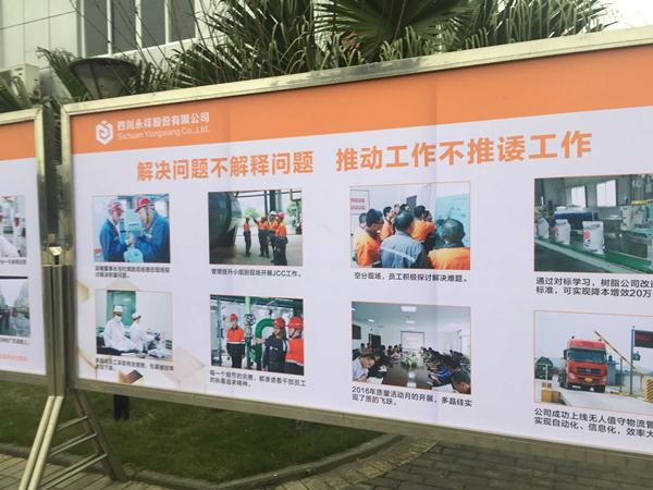為迎接年度企業文化建設總結暨表彰大會的召開,永祥股份進行了精心地組織、籌備,并專門制作了企業文化建設成果展板、優秀員工風采展板,在廠區向員工們充分展示公司一年來的企業文化建設工作及優秀員工的精神風貌,營造出濃厚的文化氛圍。