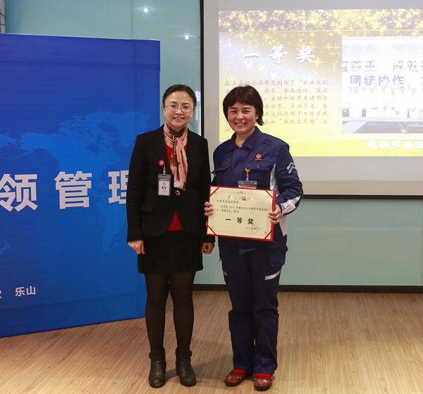 通威集團工會主席李思宇為企業文化建設優秀團隊頒獎