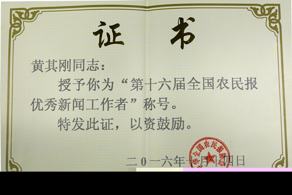 與此同時,在由國家農業部官方媒體《農民日報》舉辦的“第十六屆全國農民報優秀新聞工作者”評選中,黃總榮獲“全國農民報優秀新聞工作者”稱號。在由《河南日報農村版》、《南方農村報》、《四川農村日報》、《陜西農業科技報》、《浙江農村信息報》等全國各地30多家農民報總編輯組成的獲獎名單中,《通威報》是我國唯一一家企業報獲獎代表。