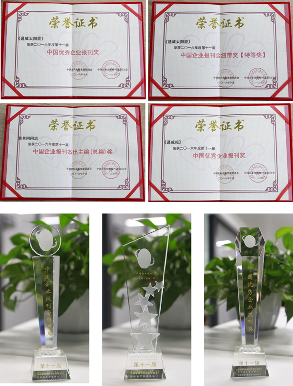 于2016年2月4日創刊的《通威太陽能》雜志首次參與評選,便一舉拿下 “中國企業內部報刊金紐帶獎(特等獎)”及“中國優秀企業報刊獎”兩項最高獎項,更是對這張集團新能源板塊“文化新名片”品質、價值的最佳肯定和鼓勵。作為通威太陽能對內展示、溝通的良好平臺和載體,以及對外形象宣傳的重要媒介和窗口,自創刊以來,《通威太陽能》雜志不斷推陳出新,突出刊物的可讀性、真實性、行業性和專業性,憑借為企業發展作出的積極貢獻,獲得業界的廣泛認可與高度評價。