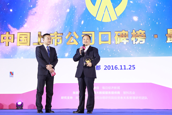 當晚還隆重舉行了2016中國資本市場榮譽盛典,“2016中國上市公司口碑榜”、“2016中國基金金鼎獎”等獎項逐一揭曉。劉漢元主席榮獲“2016第六屆中國上市公司口碑榜•最佳董事長”殊榮。