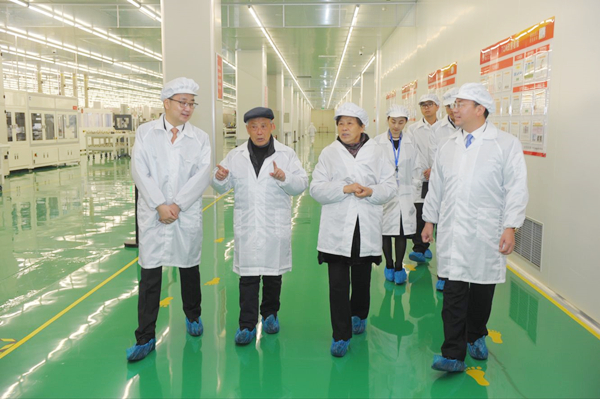 黃其剛副總裁、謝毅董事長陪同長輩參觀s1電池車間