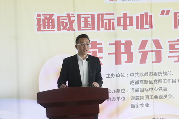 11月16日下午,由中共成都市委統(tǒng)戰(zhàn)部、成都高新區(qū)黨群工作局聯(lián)合主辦,通威國(guó)際中心黨委承辦,以“讀書勵(lì)志 崗位成才”為主題的通威國(guó)際中心“同心家園” 讀書分享會(huì)成功舉行。成都市高新區(qū)黨群工作局副局長(zhǎng)張義薇,通威國(guó)際中心黨委書記、通威集團(tuán)監(jiān)事會(huì)主席陳星宇,通威集團(tuán)工會(huì)主席李思宇出席,14名來(lái)自通威集團(tuán)及入駐通威國(guó)際中心企業(yè)的員工代表參加活動(dòng)。