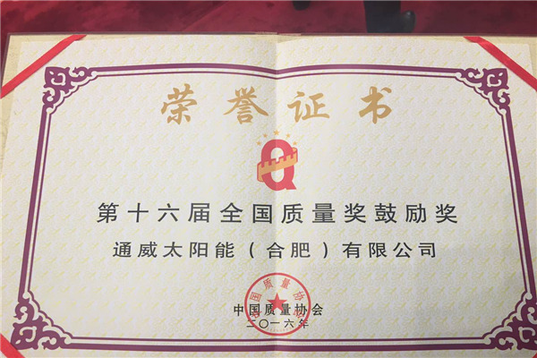 通威太陽能(合肥)有限公司榮獲第十六屆全國質量獎鼓勵獎
