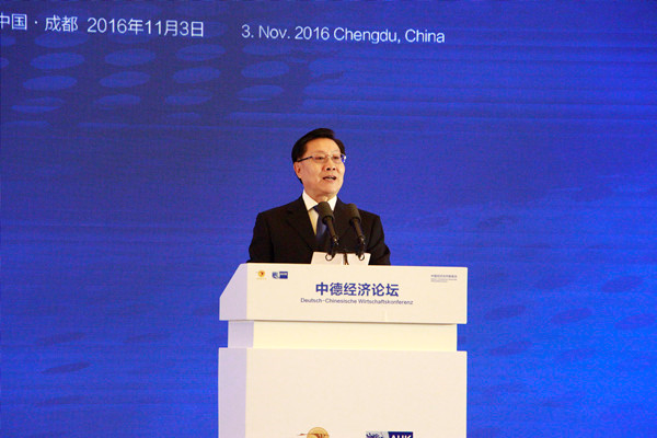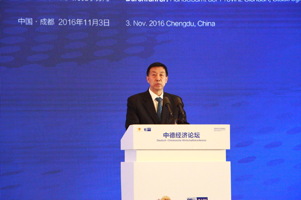 王東明書記在致辭中表示,四川作為中央政府確定的對德區(qū)域合作先行省,將抓住四川獲批建設(shè)全面系統(tǒng)創(chuàng)新改革試驗(yàn)區(qū)和中國(四川)自由貿(mào)易試驗(yàn)區(qū)的契機(jī),積極推進(jìn)與德國創(chuàng)新產(chǎn)業(yè)合作,采取“政府+機(jī)構(gòu)+企業(yè)”的共享開放合作模式,加快建設(shè)中德創(chuàng)新產(chǎn)業(yè)合作核心園區(qū),推進(jìn)中德兩國企業(yè)和機(jī)構(gòu)在節(jié)能環(huán)保、智能制造、職業(yè)培訓(xùn)等多領(lǐng)域開展項(xiàng)目合作,積極推進(jìn)中德地方經(jīng)濟(jì)合作創(chuàng)新模式和探索新路徑。