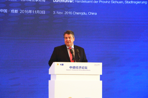 11月3日上午,作為第十六屆西博會(huì)的重大活動(dòng)之一,中德經(jīng)濟(jì)論壇于成都世紀(jì)城國際會(huì)議中心隆重舉行。四川省省長尹力主持開幕式,中國國務(wù)委員王勇,德國副總理兼聯(lián)邦經(jīng)濟(jì)和能源部部長加布里爾,四川省委書記王東明,德國聯(lián)邦經(jīng)濟(jì)和能源部國務(wù)秘書馬赫尼希,商務(wù)部副部長錢克明,國家發(fā)展改革委副主任張勇,貴州省省長孫志剛、副省長盧雍正,成都市委書記唐良智,十一屆全國政協(xié)常委、通威集團(tuán)董事局劉漢元主席出席論壇并作為川企代表對話德企,中德兩國商界代表、媒體記者共300余人出席論壇。