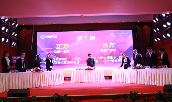 在央視名嘴劉棟棟的主持下, 總決賽于下午13時(shí)30分正式拉開(kāi)序幕,從各輪初、復(fù)賽中脫穎而出的十強(qiáng)戰(zhàn)隊(duì)集結(jié)于此,圍繞“企業(yè)員工的忠誠(chéng)與能力,誰(shuí)更重要?”、“企業(yè)成功是必然還是偶然?”、“企業(yè)管理人性化和剛性化誰(shuí)更重要”等辯題,分五組展開(kāi)了最后角逐,向總冠軍發(fā)起沖刺。經(jīng)過(guò)四個(gè)多小時(shí)的攻防對(duì)峙,十強(qiáng)戰(zhàn)隊(duì)為現(xiàn)場(chǎng)觀眾獻(xiàn)上了一部精彩紛呈的論辯“大片”。臺(tái)上,選手們邏輯清晰,思維敏捷,一展風(fēng)采;臺(tái)下,各拉拉隊(duì)卯足勁為臺(tái)上辯手吶喊助威。大賽專(zhuān)家評(píng)委組根據(jù)各辯手的現(xiàn)場(chǎng)表現(xiàn),綜合考量其辯論水平、表達(dá)能力和臨場(chǎng)狀態(tài)以及團(tuán)隊(duì)配合情況,評(píng)選出優(yōu)勝團(tuán)隊(duì)和個(gè)人獎(jiǎng)項(xiàng)。其中,總部第二戰(zhàn)隊(duì)拔得頭籌,斬獲“通威集團(tuán)2016企業(yè)文化辯論大賽冠軍”殊榮。