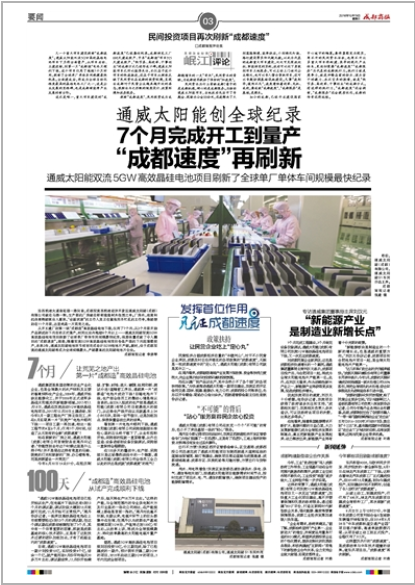 通威太陽能“成都速度”引發主流媒體廣泛聚焦