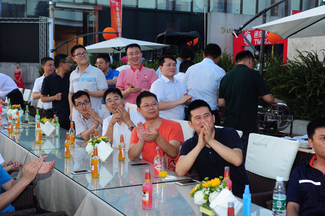 會議結束后,大家換上便裝,懷著輕松愉悅的心情,來到東湖公園參加“湖·光盛宴”2016上半年精英晚宴。川劇變臉、歐美樂團表演、鋼琴演奏……現(xiàn)場一個個精心準備的節(jié)目讓大家直呼過癮。“五、四……一”隨著現(xiàn)場高喊倒計時,湖面上水幕電影播放起通威太陽能(合肥、成都)公司發(fā)展歷程,大家紛紛掏出手機,留存下自己與公司共同成長的記憶。