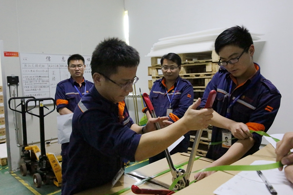 計(jì)劃部員工在進(jìn)行成品打包實(shí)操考試