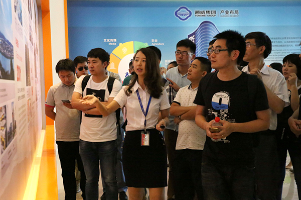 蔣翠清教授一行在公司展廳聽取通威集團(tuán)興業(yè)歷程介紹
