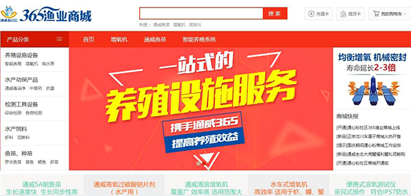 據(jù)悉,“365漁業(yè)商城”以“推廣先進(jìn)養(yǎng)殖模式、聚合水產(chǎn)養(yǎng)殖物資、搭建新型電商平臺、提升現(xiàn)代漁業(yè)服務(wù)”為發(fā)展目標(biāo),旨在利用信息化、移動互聯(lián)方式,改變過去的傳統(tǒng)購銷模式,力爭打造中國漁業(yè)第一電商平臺。在“365漁業(yè)商城”里,養(yǎng)殖設(shè)施設(shè)備、水廠動保產(chǎn)品、檢測工具設(shè)備、水產(chǎn)飼料、魚苗種苗等漁需物質(zhì)應(yīng)有盡有。