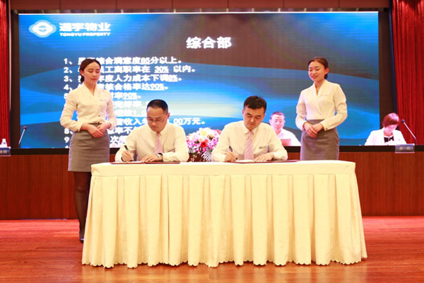 通宇物業(yè)總經(jīng)理孫斌與集團(tuán)副總裁黃其剛簽定目標(biāo)責(zé)任書