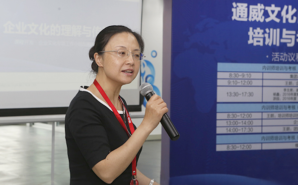 培訓期間,參訓學員接受了“企業文化知識”、“通威文化理解與講解”、“團隊文化建設工具的使用”、“講師技能訓練”等培訓。李主席對學員們犧牲假期時間積極參加培訓的精神表示贊賞,她圍繞《企業文化手冊》向大家介紹和剖析了通威的企業文化理念、企業文化基礎知識,以及近年來企業文化活動的開展情況,幫助大家透徹理解通威文化、真正認同通威文化、主動踐行通威文化。