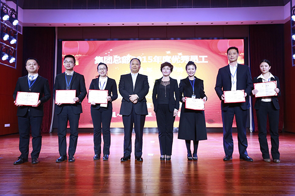 劉主席和禚總為2015年度集團總部優秀員工頒獎并合影