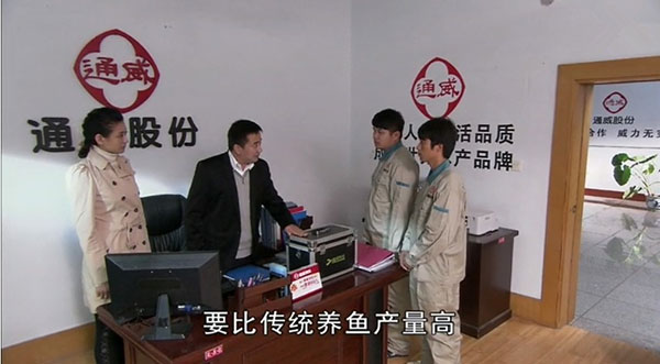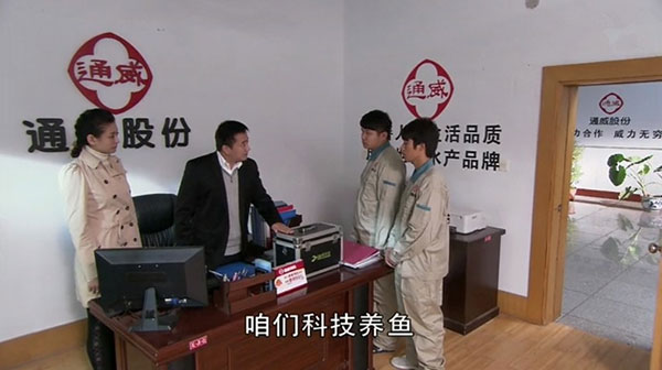 在劇中,象牙村創業先鋒————劉一水、謝小梅、劉能、趙四等人為通威鼎力代言————與通威合作,生產飼料,帶領村民科技養魚、共同致富。劇中主角劉一水和謝小梅合作成立通威遼北分公司,通過創業過程中一系列故事情節的推動和發展,淋漓盡致地展示了通威品牌魚飼料、通威獨創365養殖模式的出色,以及其服務的專業性和科學性,體現了通威在水產飼料世界領先的行業權威地位。