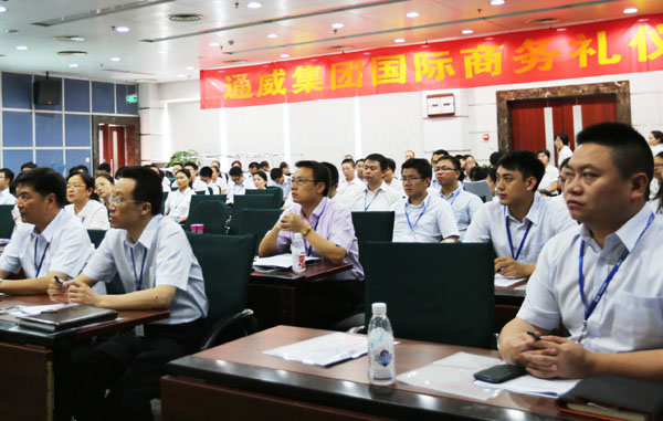 本次培訓由國際注冊禮儀培訓師張艷擔任講師,培訓課程內容主要包含商務著裝規范、行為規范、儀態禮儀以及商務交往禮儀等方面。本次商務禮儀培訓得到參訓學員的一致好評,學員表示通過本次培訓充分意識到了商務禮儀的重要性,同時也進一步領會到集團就此項工程的相關要求和整體思路,大家紛紛表示一定從個人做起,進一步塑造通威的良好形象。