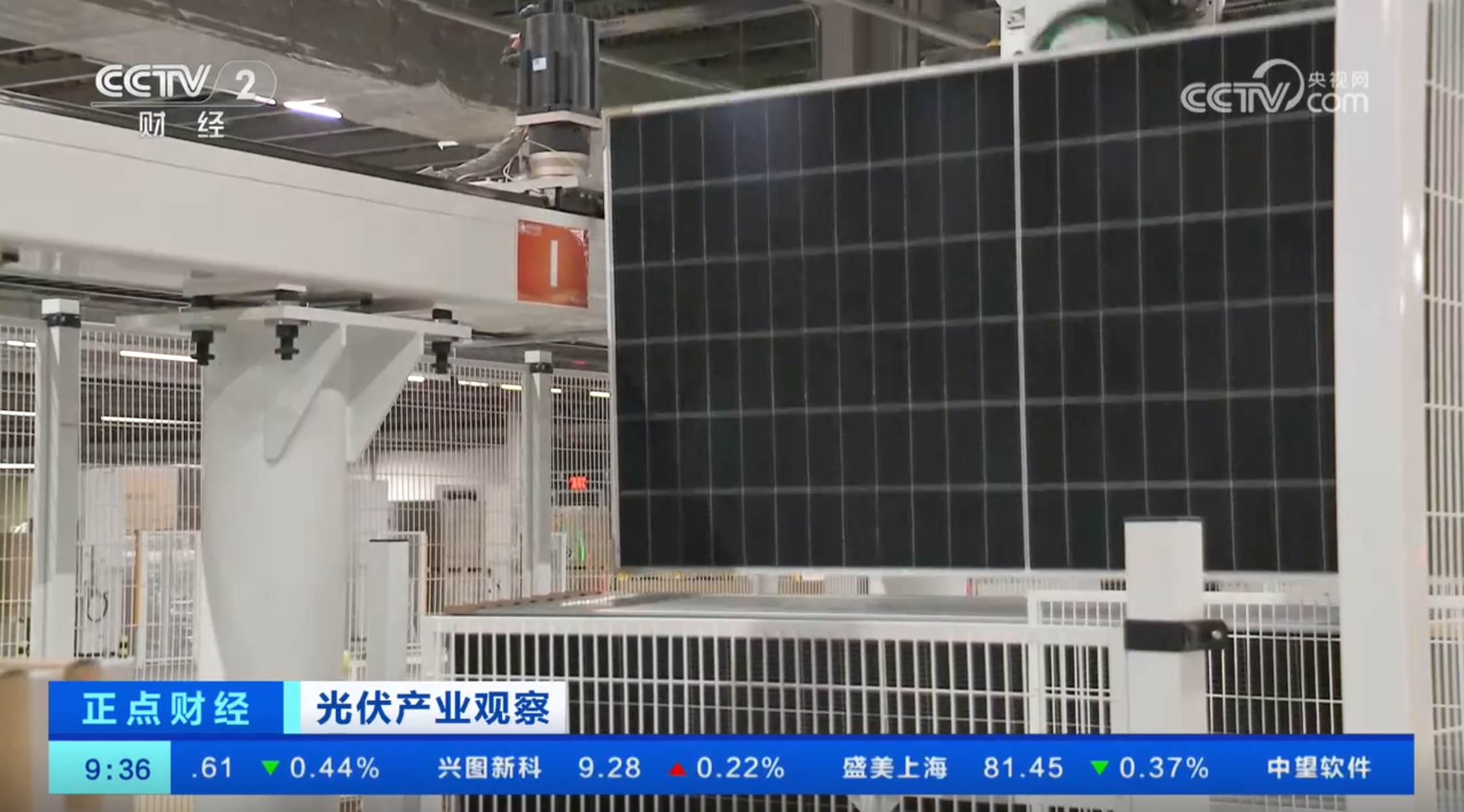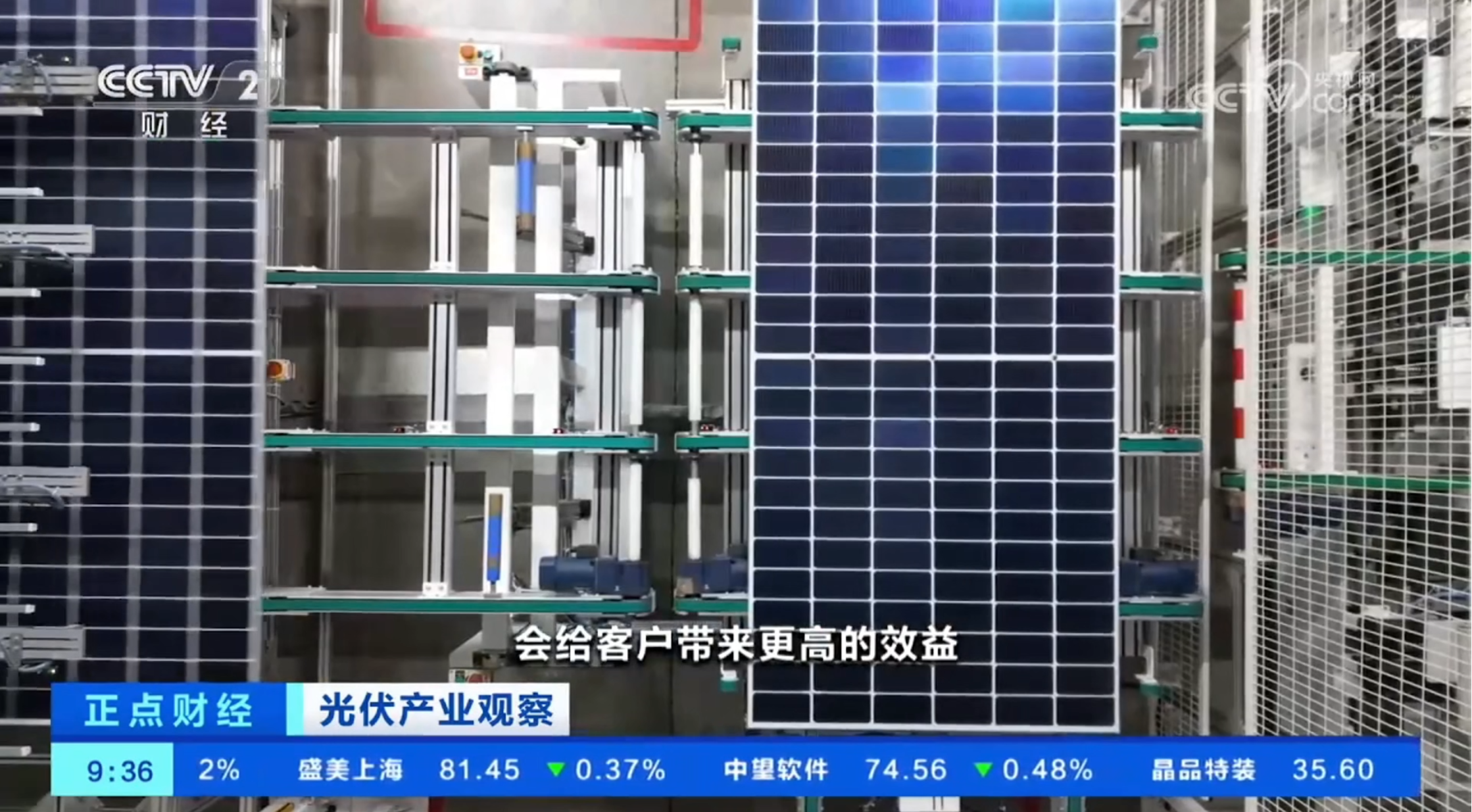 央視CCTV-2《正點(diǎn)財(cái)經(jīng)》欄目播出通威組件智能制造生產(chǎn)車間畫(huà)面